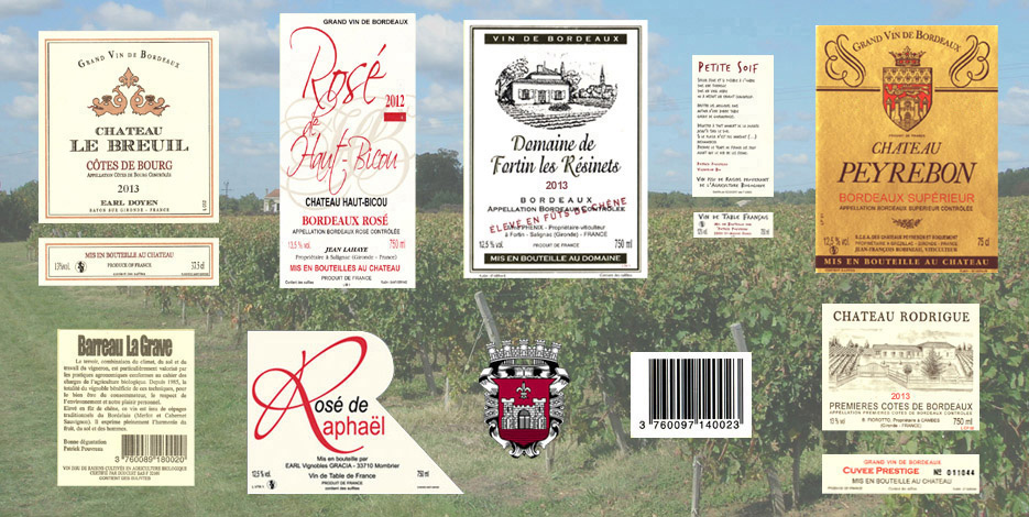 Au cœur du vignoble bordelais, l'imprimerie FLADH réalise vos étiquettes (traditionnelles ou adhésives), à tous les niveaux de travaux possibles : de la conception complète d'un nouveau modèle à la refonte d'une étiquette existante, mais aussi le repiquage de vos étiquettes déjà imprimées et cela quelque soit la quantité.